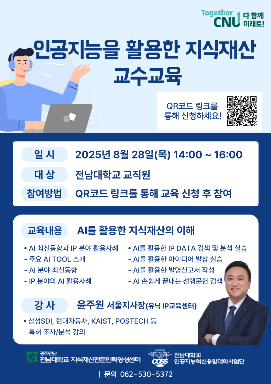 ○ 주 관 : 전남대학교 광주/전남 지식재산전문인력양성센터, 전남대학교 인공지능혁신융합대학사업단