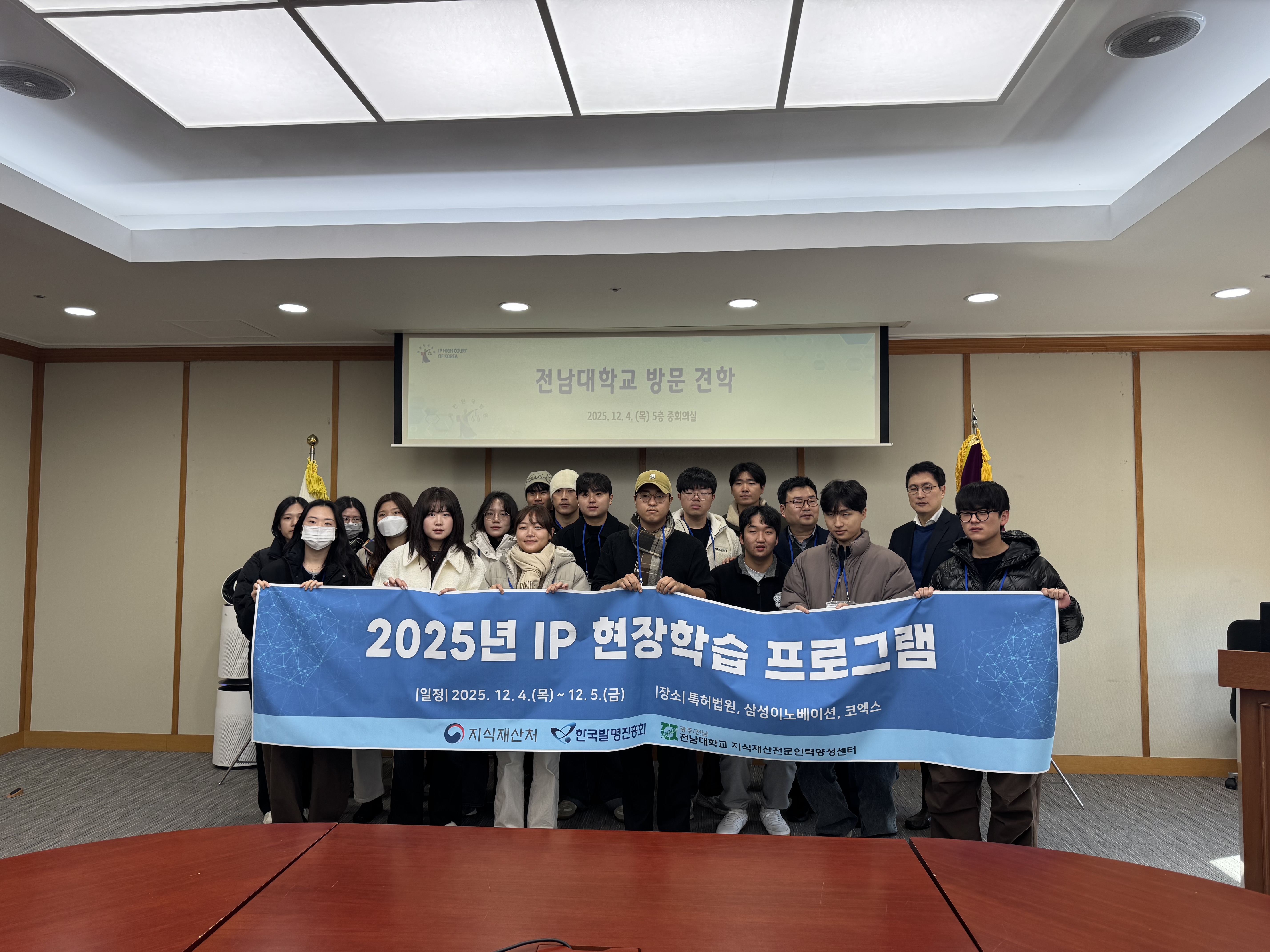 * 일 정 : 2025년 12월 4일(목) ~ 12월 5일(금), 1박 2일* 장 소 : 특허법원, 삼성이노베이션, 코엑스* 내 용 : 대학생들의 지식재산 이해도와 관심을 높이고 진로 탐색의 기회를 제공하기 위하여 지식재산 관련 기관 견학 프로그램 운영* 주 관 : 전남대학교 광주/전남 지식재산전문인력양성센터, 전남대학교지식재산융합전공, 전남대학교 지식재산융합학과
